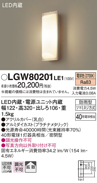 Panasonic ¥¨¥¯¥¹¥Æ¥ê¥¢¥é¥¤¥È LGW80201LE1
