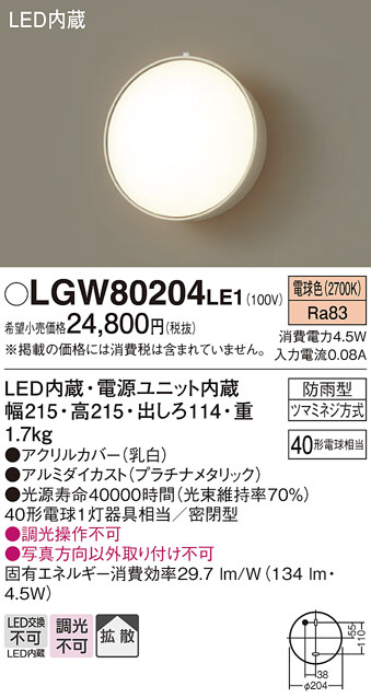Panasonic ¥¨¥¯¥¹¥Æ¥ê¥¢¥é¥¤¥È LGW80204LE1