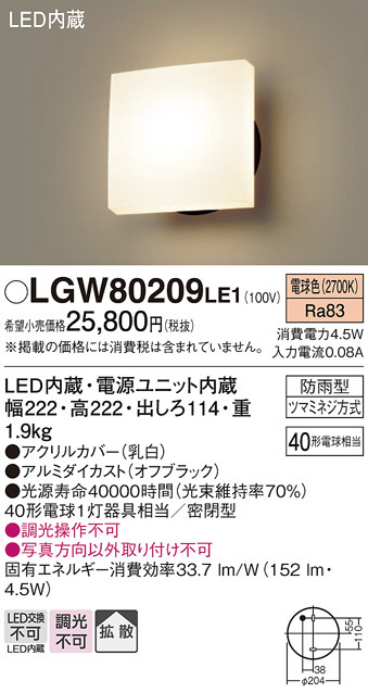 Panasonic ¥¨¥¯¥¹¥Æ¥ê¥¢¥é¥¤¥È LGW80209LE1