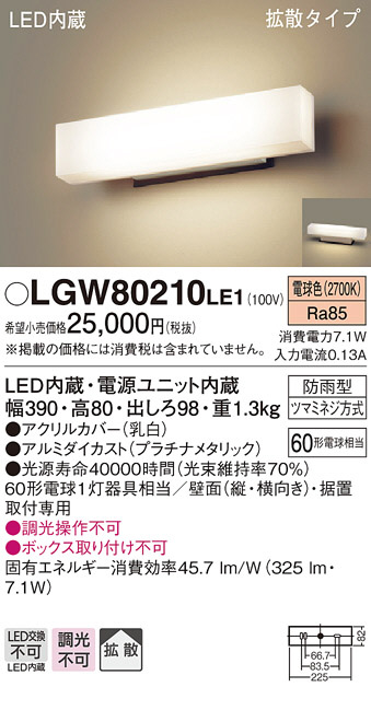 Panasonic LED ¥¨¥¯¥¹¥Æ¥ê¥¢¡¦¥¢¥¦¥È¥É¥¢ LGW80210LE1