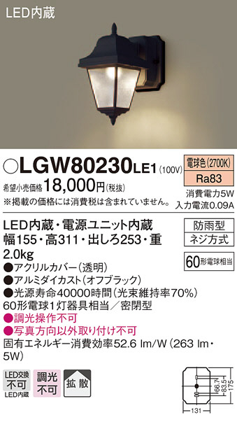 Panasonic LED ¥¨¥¯¥¹¥Æ¥ê¥¢¡¦¥¢¥¦¥È¥É¥¢ LGW80230LE1
