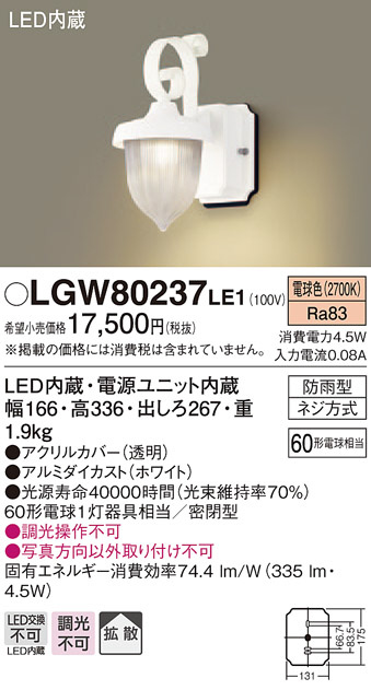 Panasonic ¥¨¥¯¥¹¥Æ¥ê¥¢¥é¥¤¥È LGW80237LE1