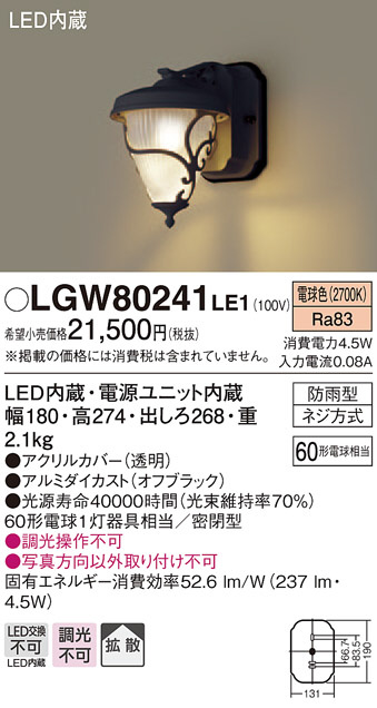 Panasonic ¥¨¥¯¥¹¥Æ¥ê¥¢¥é¥¤¥È LGW80241LE1