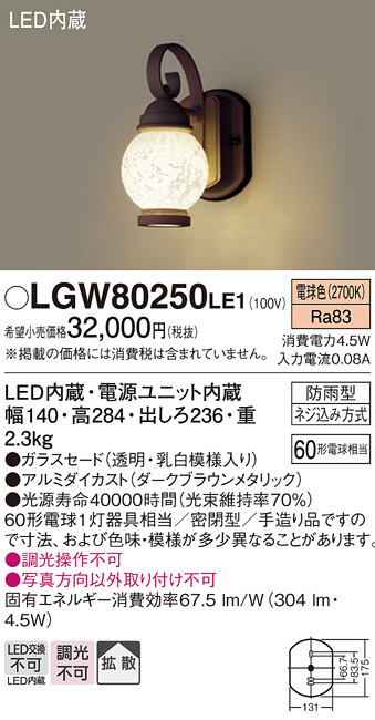 Panasonic ¥¨¥¯¥¹¥Æ¥ê¥¢¥é¥¤¥È LGW80250LE1