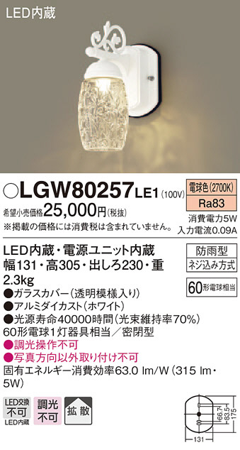 Panasonic LED ¥¨¥¯¥¹¥Æ¥ê¥¢¡¦¥¢¥¦¥È¥É¥¢ LGW80257LE1
