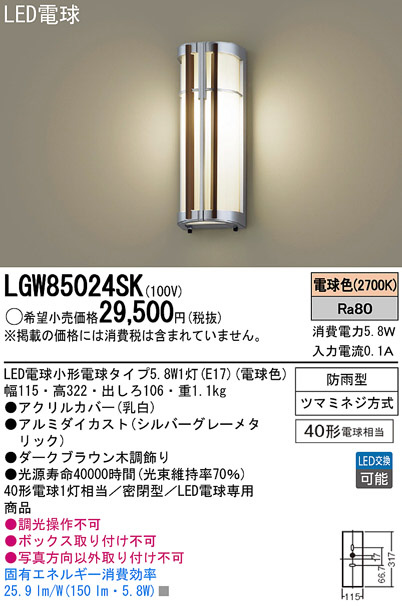 Panasonic LED¥¨¥¯¥¹¥Æ¥ê¥¢¡¦¥¢¥¦¥È¥É¥¢ LGW85024SK