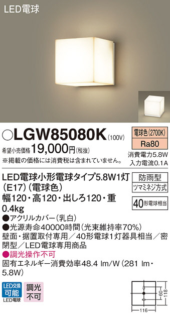 Panasonic LED ¥¨¥¯¥¹¥Æ¥ê¥¢¡¦¥¢¥¦¥È¥É¥¢ LGW85080K