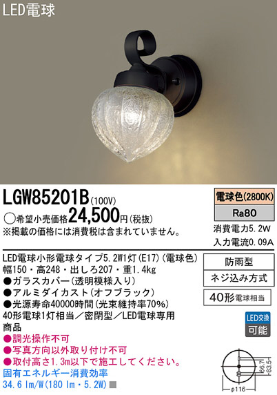 Panasonic LED ¥¨¥¯¥¹¥Æ¥ê¥¢¡¦¥¢¥¦¥È¥É¥¢ LGW85201B