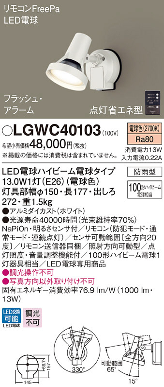 Panasonic ¥¨¥¯¥¹¥Æ¥ê¥¢¡¦¥¢¥¦¥È¥É¥¢ LGWC40103