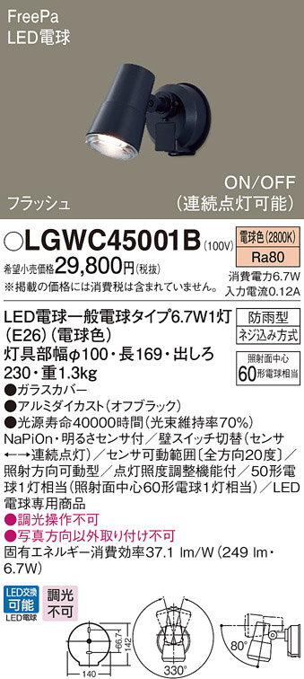 Panasonic LED ¥¨¥¯¥¹¥Æ¥ê¥¢¡¦¥¢¥¦¥È¥É¥¢ LGWC45001B