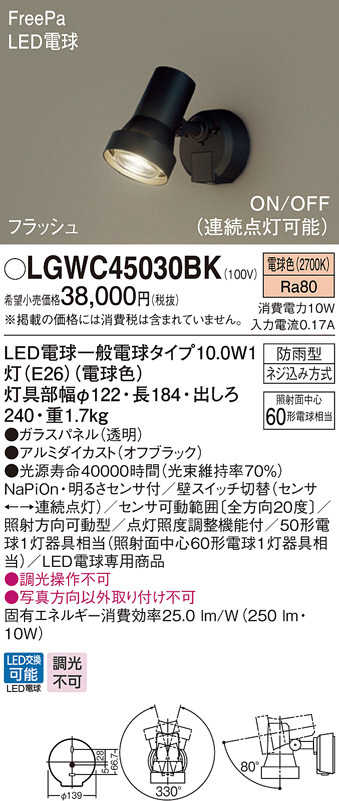 Panasonic LED ¥¨¥¯¥¹¥Æ¥ê¥¢¡¦¥¢¥¦¥È¥É¥¢ LGWC45030BK