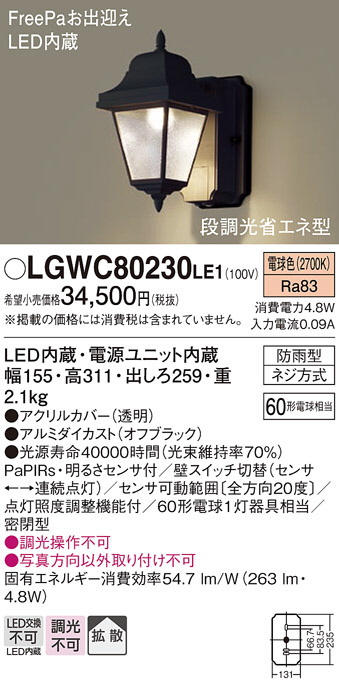 Panasonic ¥¨¥¯¥¹¥Æ¥ê¥¢¥é¥¤¥È LGWC80230LE1