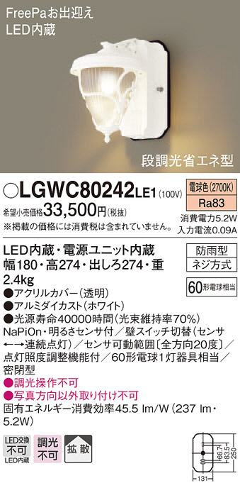 Panasonic LED ¥¨¥¯¥¹¥Æ¥ê¥¢¡¦¥¢¥¦¥È¥É¥¢ LGWC80242LE1