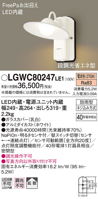 Panasonic LED ¥¨¥¯¥¹¥Æ¥ê¥¢¡¦¥¢¥¦¥È¥É¥¢ LGWC80247LE1