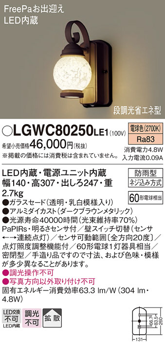 Panasonic ¥¨¥¯¥¹¥Æ¥ê¥¢¥é¥¤¥È LGWC80250LE1