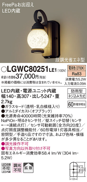 Panasonic ¥¨¥¯¥¹¥Æ¥ê¥¢¥é¥¤¥È LGWC80251LE1