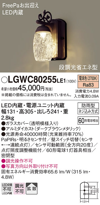 Panasonic ¥¨¥¯¥¹¥Æ¥ê¥¢¥é¥¤¥È LGWC80255LE1