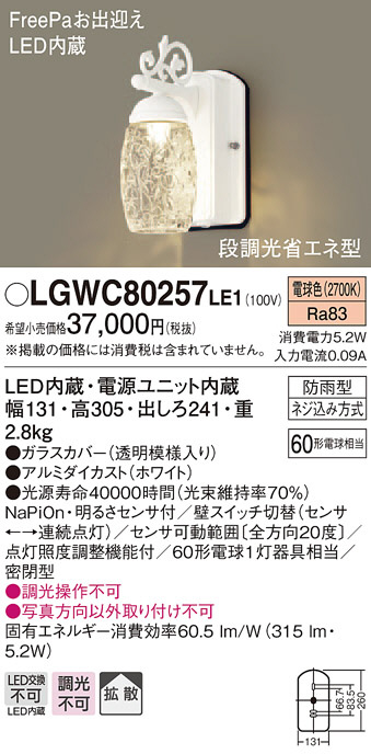 Panasonic LED ¥¨¥¯¥¹¥Æ¥ê¥¢¡¦¥¢¥¦¥È¥É¥¢ LGWC80257LE1