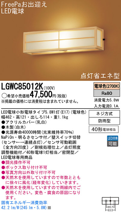 Panasonic LED¥¨¥¯¥¹¥Æ¥ê¥¢¡¦¥¢¥¦¥È¥É¥¢ LGWC85012K