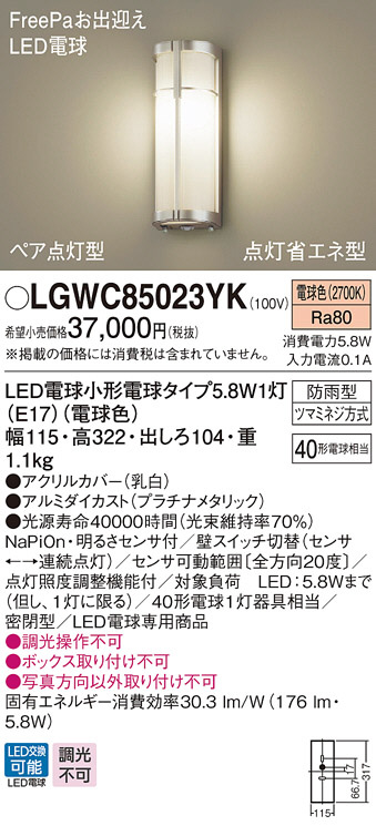 Panasonic LED ¥¨¥¯¥¹¥Æ¥ê¥¢¡¦¥¢¥¦¥È¥É¥¢ LGWC85023YK