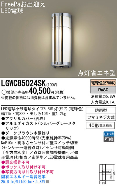 Panasonic LED¥¨¥¯¥¹¥Æ¥ê¥¢¡¦¥¢¥¦¥È¥É¥¢ LGWC85024SK