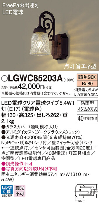 Panasonic LED ¥¨¥¯¥¹¥Æ¥ê¥¢¡¦¥¢¥¦¥È¥É¥¢ LGWC85203A