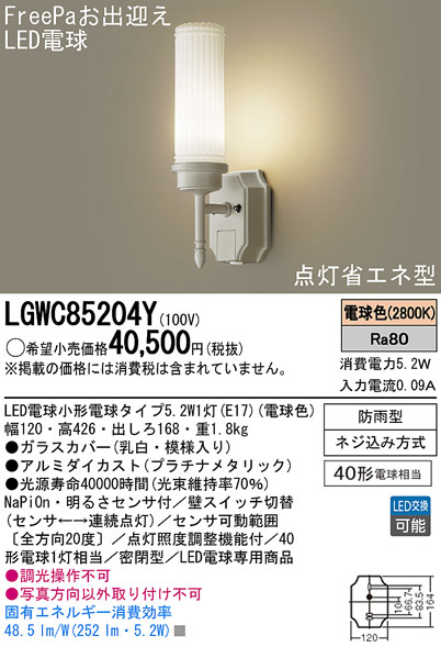 Panasonic LED ¥¨¥¯¥¹¥Æ¥ê¥¢¡¦¥¢¥¦¥È¥É¥¢ LGWC85204Y