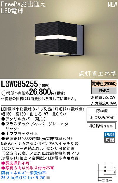 Panasonic LED¥¨¥¯¥¹¥Æ¥ê¥¢¡¦¥¢¥¦¥È¥É¥¢ LGWC85255