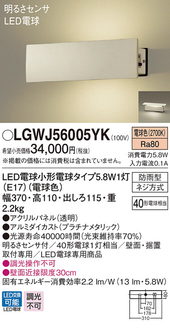 Panasonic LED ¥¨¥¯¥¹¥Æ¥ê¥¢¡¦¥¢¥¦¥È¥É¥¢ LGWJ56005YK