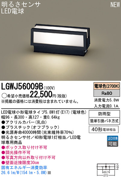 Panasonic LED¥¨¥¯¥¹¥Æ¥ê¥¢¡¦¥¢¥¦¥È¥É¥¢ LGWJ56009B