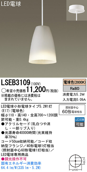 Panasonic LED¥Ú¥ó¥À¥ó¥È¥é¥¤¥È LSEB3109