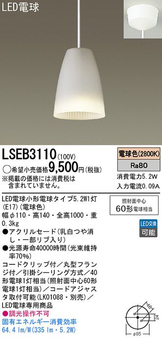 Panasonic LED¥Ú¥ó¥À¥ó¥È¥é¥¤¥È LSEB3110