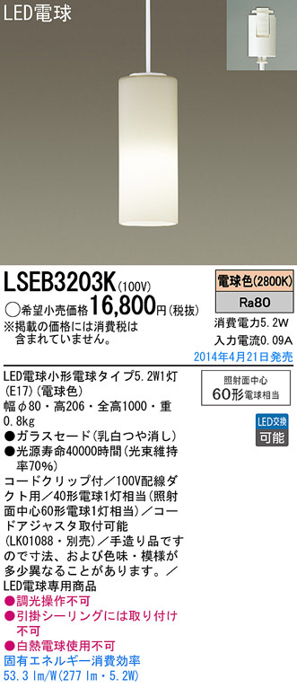 Panasonic LED¥Ú¥ó¥À¥ó¥È¥é¥¤¥È LSEB3203K