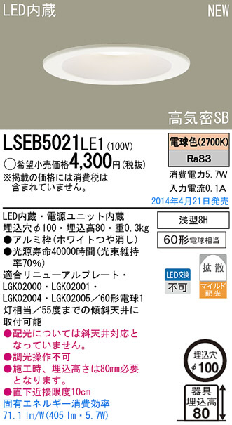 Panasonic LED¥À¥¦¥ó¥é¥¤¥È LSEB5021LE1