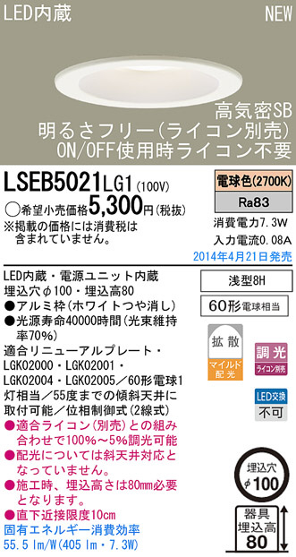 Panasonic LED¥À¥¦¥ó¥é¥¤¥È LSEB5021LG1