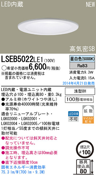 Panasonic LED¥À¥¦¥ó¥é¥¤¥È LSEB5022LE1