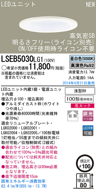 Panasonic LED¥À¥¦¥ó¥é¥¤¥È LSEB5030LG1