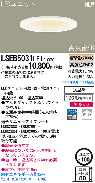 Panasonic LED¥À¥¦¥ó¥é¥¤¥È LSEB5031LE1