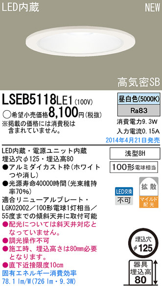 Panasonic LED¥À¥¦¥ó¥é¥¤¥È LSEB5118LE1