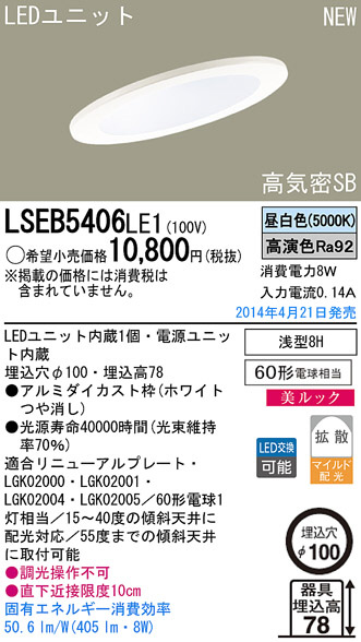 Panasonic LED¥À¥¦¥ó¥é¥¤¥È LSEB5406LE1