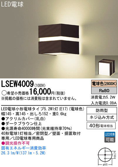 Panasonic LED¥¨¥¯¥¹¥Æ¥ê¥¢¡¦¥¢¥¦¥È¥É¥¢ LSEW4009