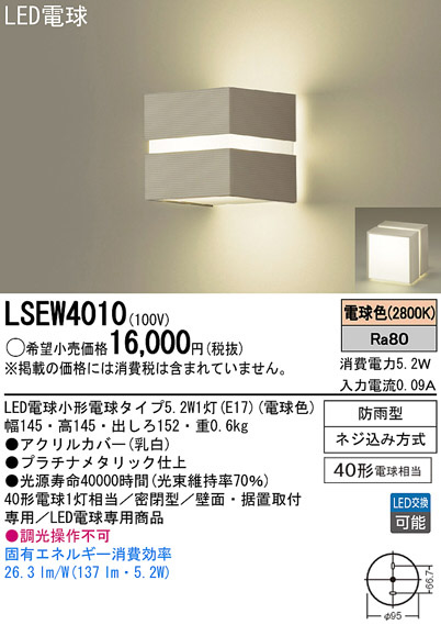 Panasonic LED¥¨¥¯¥¹¥Æ¥ê¥¢¡¦¥¢¥¦¥È¥É¥¢ LSEW4010