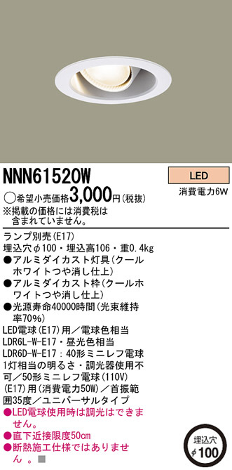 Panasonic LED ¥À¥¦¥ó¥é¥¤¥È NNN61520W