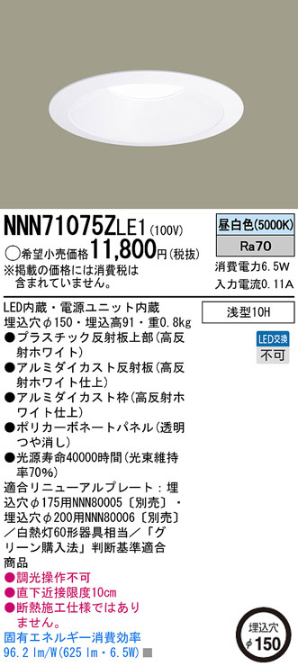 Panasonic LED¥À¥¦¥ó¥é¥¤¥È NNN71075ZLE1