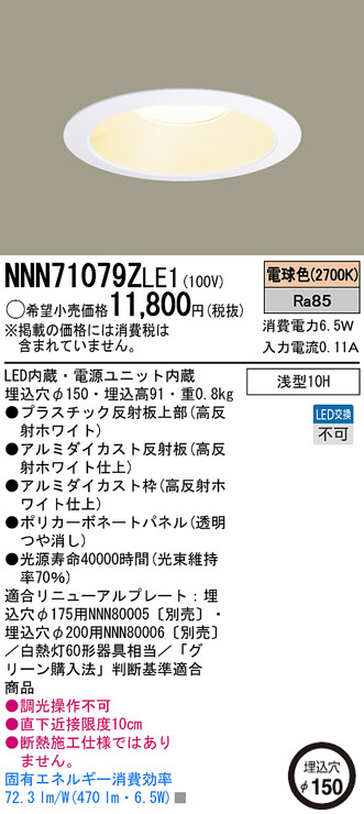 Panasonic LED¥À¥¦¥ó¥é¥¤¥È NNN71079ZLE1