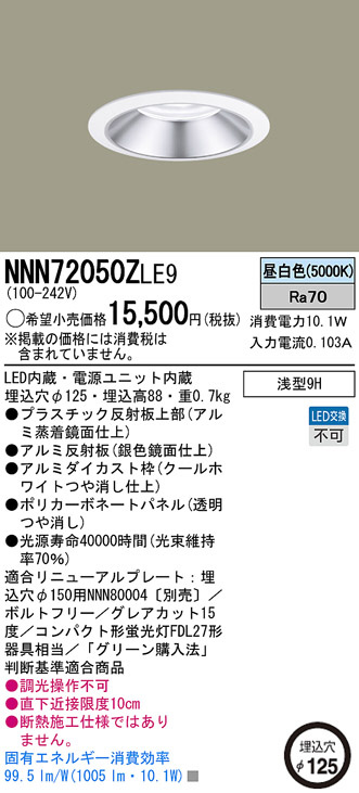 Panasonic LED¥À¥¦¥ó¥é¥¤¥È NNN72050ZLE9