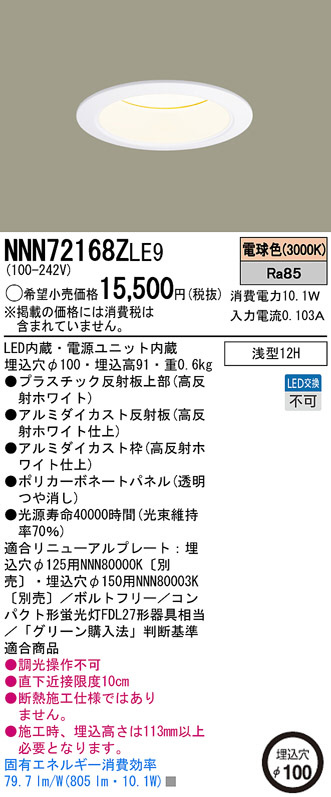 Panasonic LED¥À¥¦¥ó¥é¥¤¥È NNN72168ZLE9