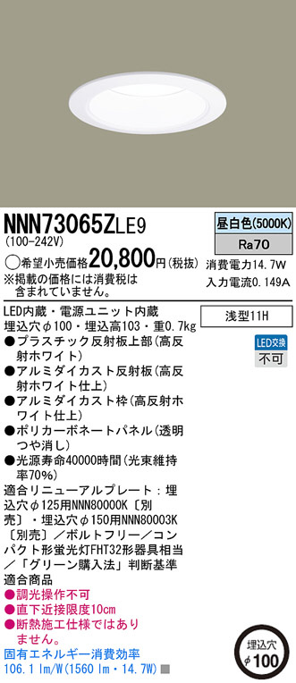 Panasonic LED¥À¥¦¥ó¥é¥¤¥È NNN73065ZLE9