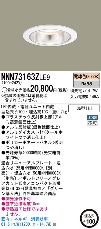 Panasonic LED¥À¥¦¥ó¥é¥¤¥È NNN73163ZLE9