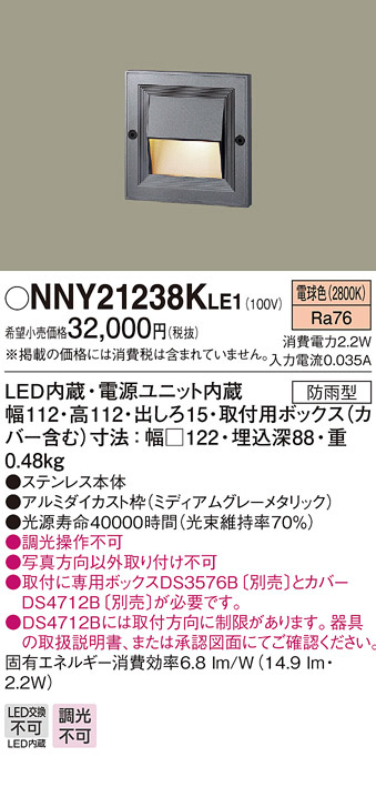 Panasonic LED ¥¨¥¯¥¹¥Æ¥ê¥¢¡¦¥¢¥¦¥È¥É¥¢ NNY21238KLE1
